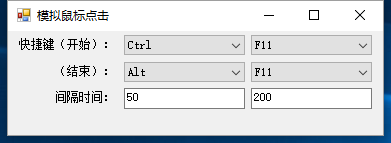功能:自定义开始和结束的快捷键;自定义每次点击的时间间隔(最小值和最大值之间随机间隔时间,单位是毫秒)