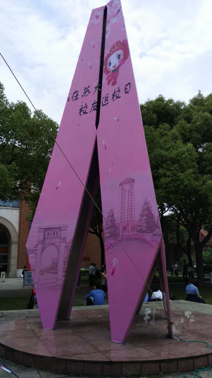 逸夫楼门口的雕塑也换了新装