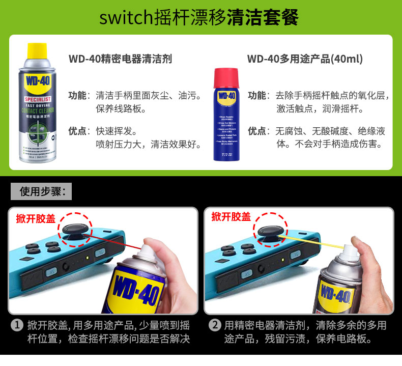 这个用了之后完美解决了漂移问题。免费给店主推广下。商品链接:WD-40 电脑主板线路清洗剂 switch 手柄漂移仪器精密电器清洁剂 WD40